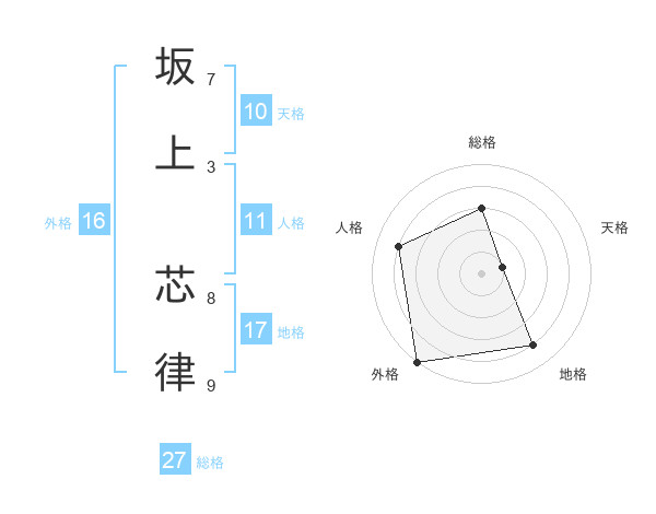 坂上 芯律さんを姓名の画数から五運を鑑定
