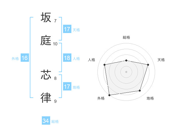 坂庭 芯律さんの総格は34画の2点!