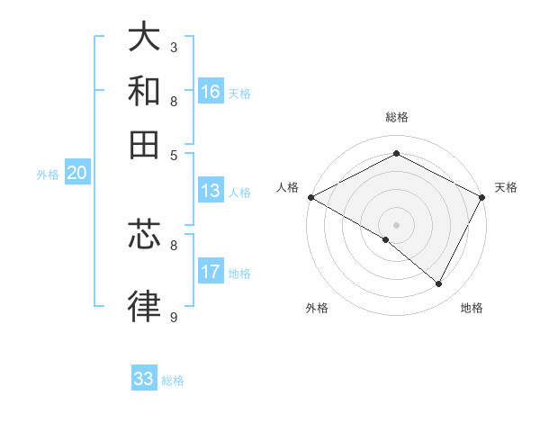 大和田 芯律さんを姓名の画数から五運を鑑定