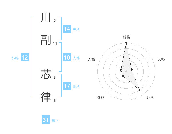 川副 芯律さんの総格は31画の5点!
