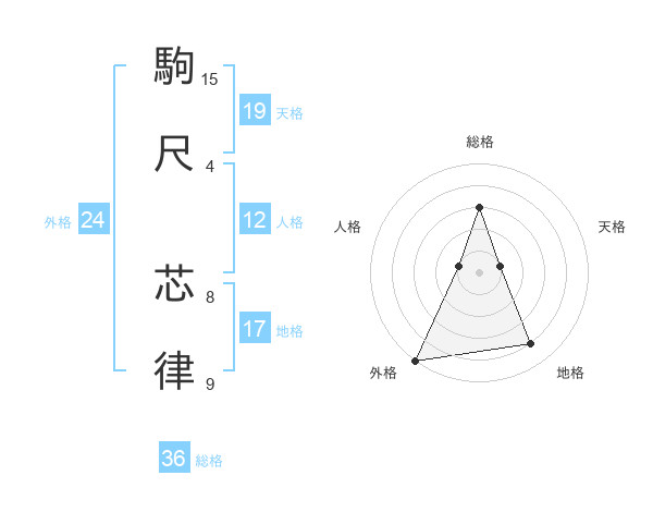 駒尺 芯律さんの外格は24画の5点!