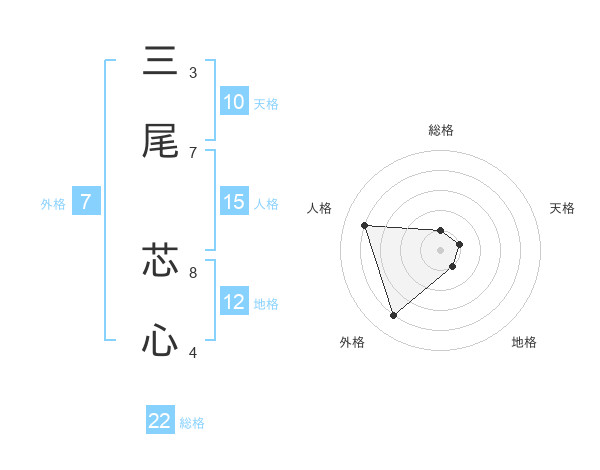 三尾 芯心さんを姓名の画数から五運を鑑定