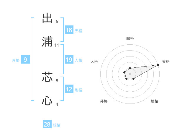 出浦 芯心さんを姓名の画数から五運を鑑定