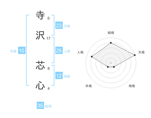寺沢 芯心さんの総格は35画の4点!