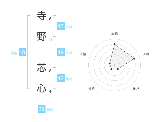 寺野 芯心さんを姓名の画数から五運を鑑定