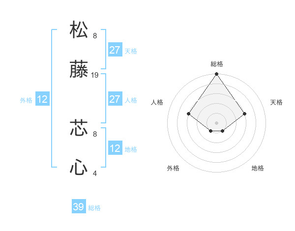 松藤 芯心さんの総格は39画の5点!