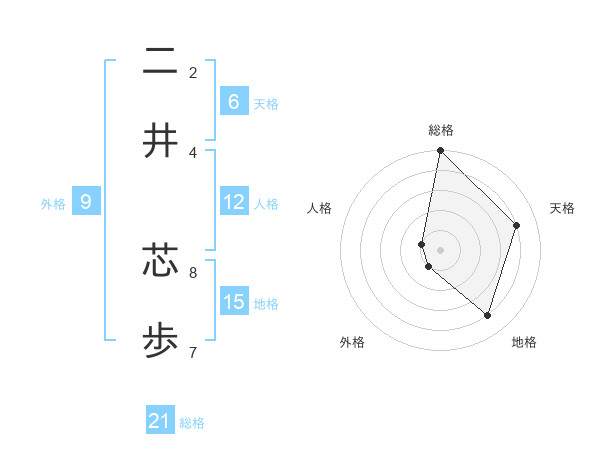 二井 芯歩さんの総格は21画の5点!