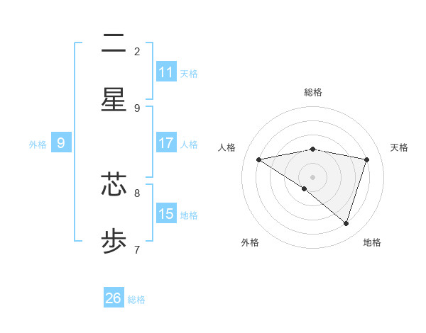 二星 芯歩さんの総格は26画の2点!