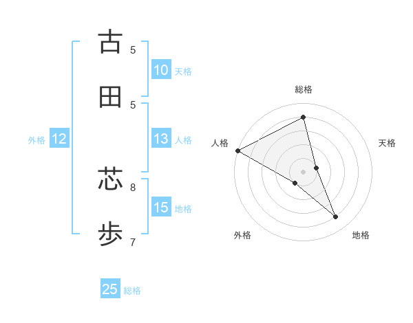 古田 芯歩さんの総格は25画の4点!