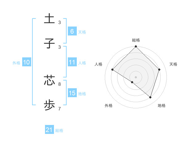 土子 芯歩さんの総格は21画の5点!