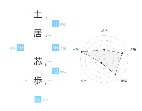 土居 芯歩さんの天格は11画の4点!
