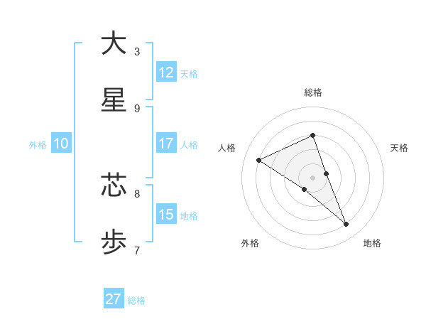 大星 芯歩さんの総格は27画の3点!