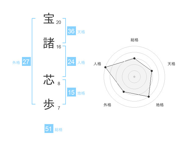 宝諸 芯歩さんの総格は51画の3点!