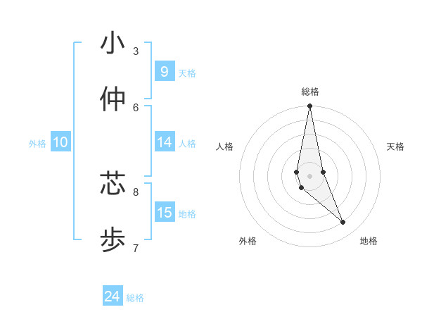 小仲 芯歩さんを姓名の画数から五運を鑑定