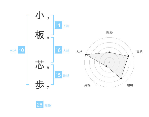 小板 芯歩さんを姓名の画数から五運を鑑定