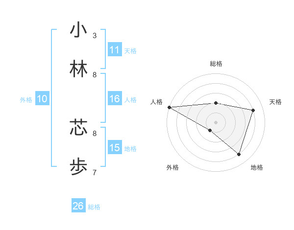 小林 芯歩さんを姓名の画数から五運を鑑定