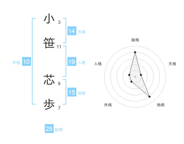 小笹 芯歩さんの総格は29画の4点!