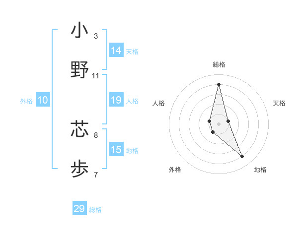 小野 芯歩さんを姓名の画数から五運を鑑定