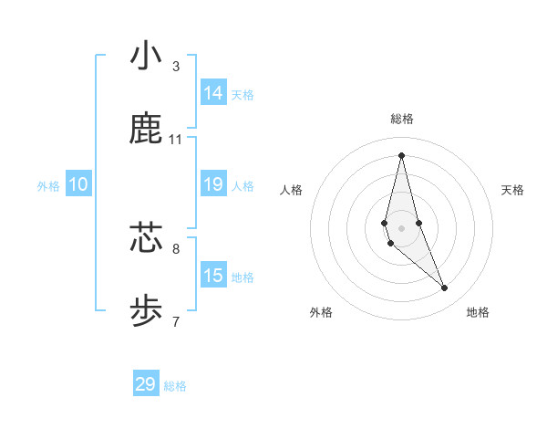 小鹿 芯歩さんの総格は29画の4点!