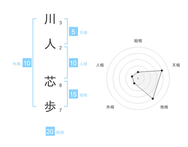 川人 芯歩さんの天格は5画の4点!