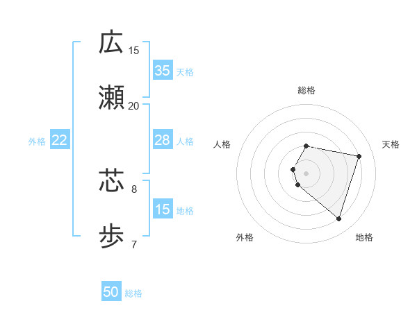 広瀬 芯歩さんの総格は50画の2点!