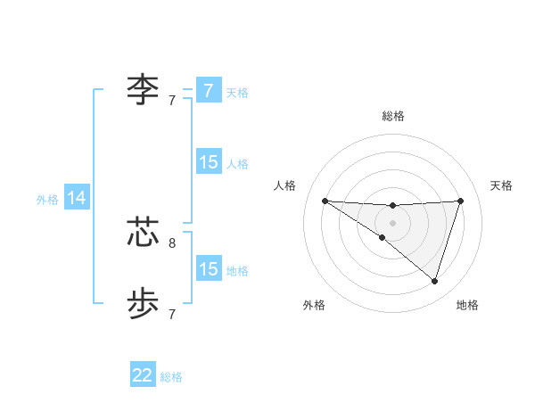 李 芯歩さんの総格は22画の1点!