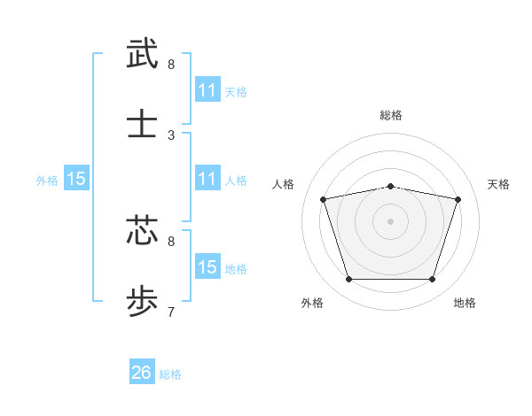 武士 芯歩さんの地格は15画の4点!