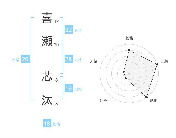 喜瀬 芯汰さんの総格は48画の4点!