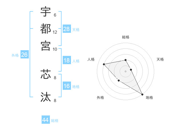 宇都宮 芯汰さんの総格は44画の2点!