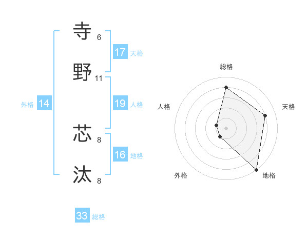 寺野 芯汰さんの天格は17画の4点!