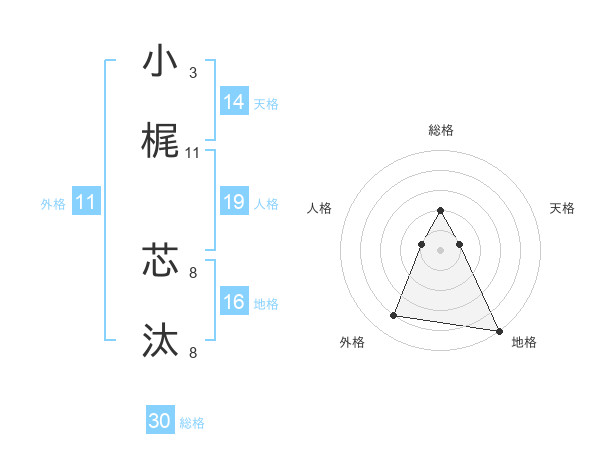 小梶 芯汰さんの総格は30画の2点!