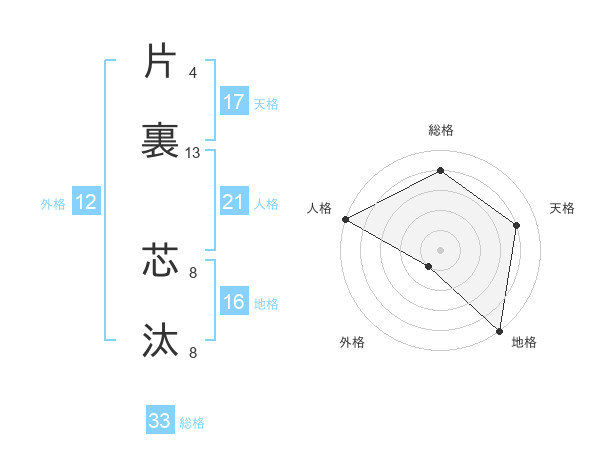 片裏 芯汰さんの天格は17画の4点!