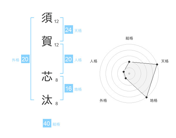 須賀 芯汰さんの天格は24画の5点!