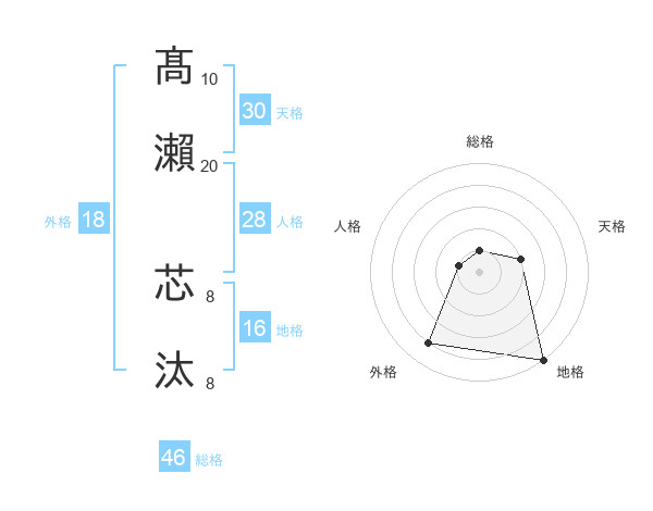 髙瀨 芯汰さんを姓名の画数から五運を鑑定