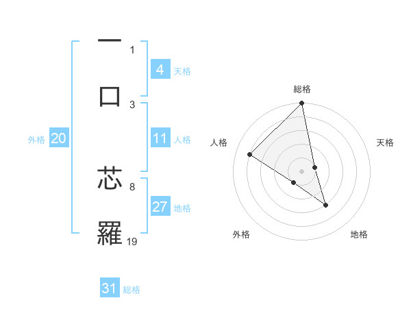一口 芯羅さんの総格は31画の5点!