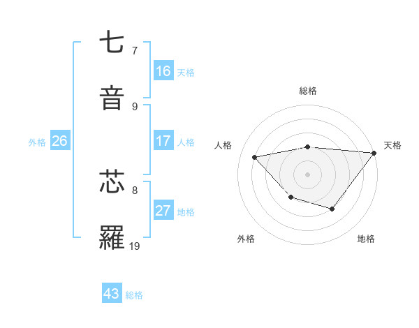 七音 芯羅さんの天格は16画の5点!