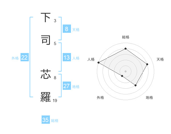 下司 芯羅さんの総格は35画の4点!