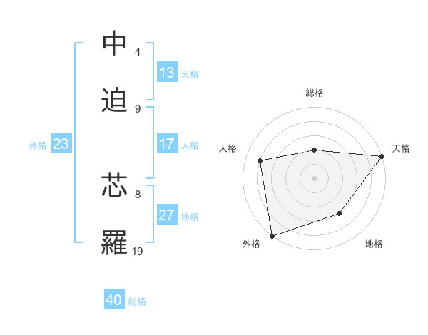 中迫 芯羅さんの天格は13画の5点!