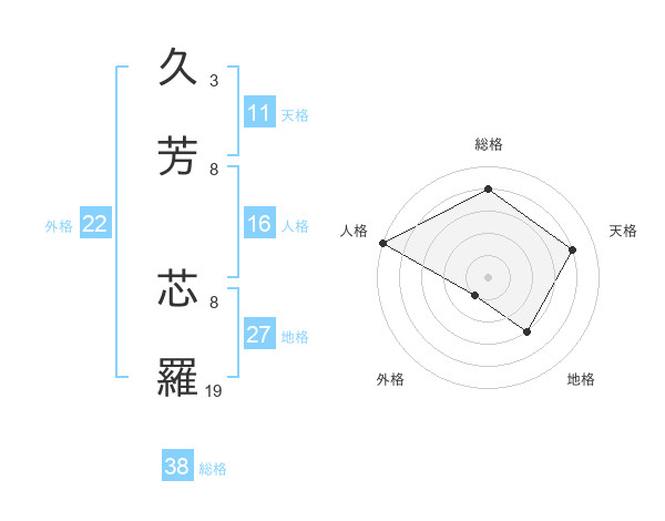 久芳 芯羅さんを姓名の画数から五運を鑑定