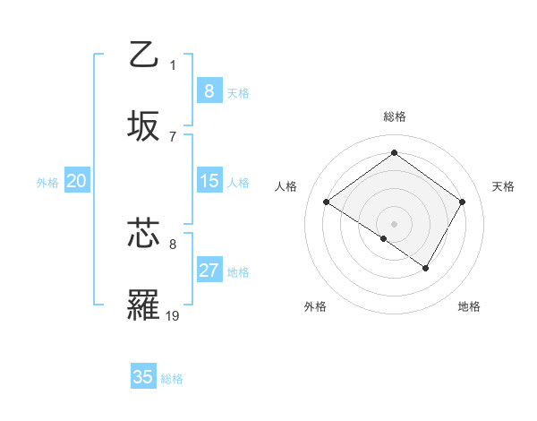 乙坂 芯羅さんを姓名の画数から五運を鑑定
