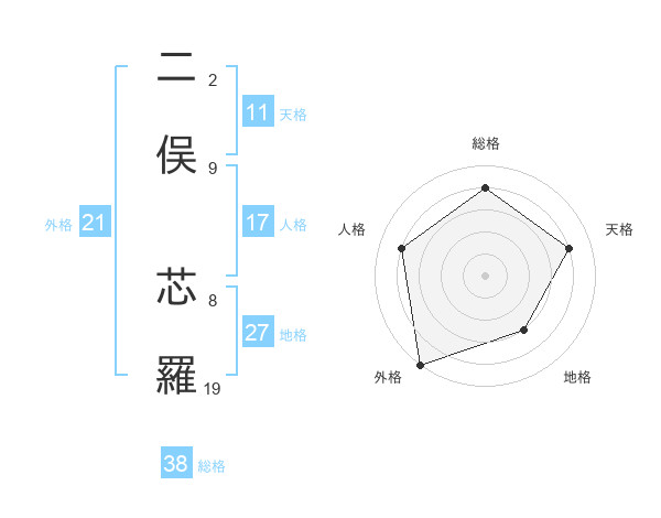 二俣 芯羅さんの外格は21画の5点!