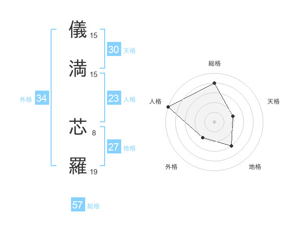 儀満 芯羅さんの総格は57画の4点!