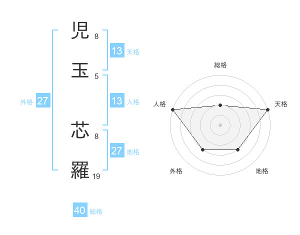 児玉 芯羅さんを姓名の画数から五運を鑑定