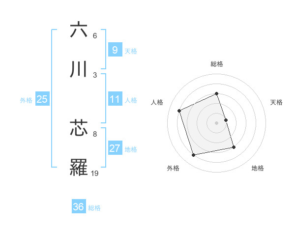 六川 芯羅さんの外格は25画の4点!