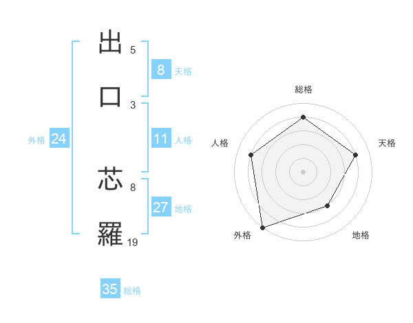 出口 芯羅さんの総格は35画の4点!