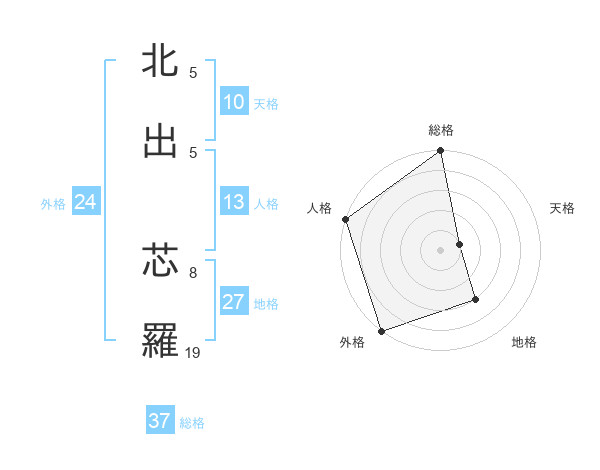 北出 芯羅さんの外格は24画の5点!