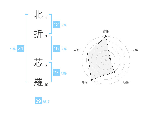 北折 芯羅さんの総格は39画の5点!