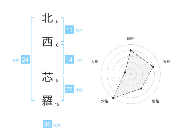 北西 芯羅さんの総格は38画の4点!