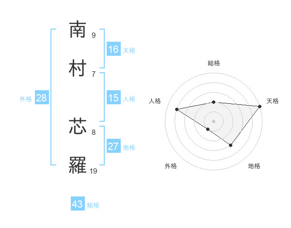 南村 芯羅さんの天格は16画の5点!