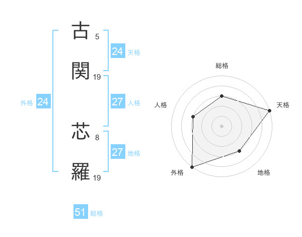 古関 芯羅さんの天格は24画の5点!